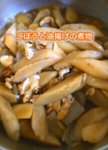 ほんとは鶏ごぼうを作ろうかと思ったのですが鶏肉が高いので油揚げに変更(^^)